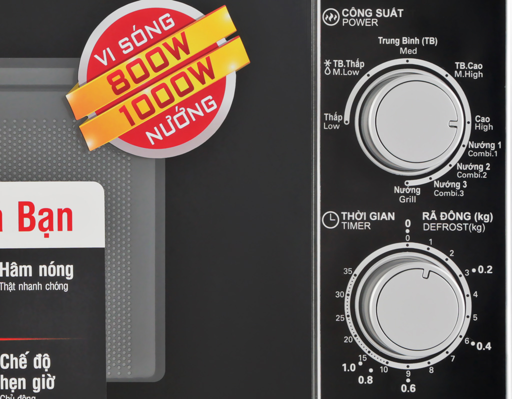 LÒ VI SÓNG DÒNG CƠ R-G222VN-S Giá cũ: 0 VNĐ Giá: Liên hệ Số lượng: Chúng tôi hiện nay đang vinh dự trở thành nhà phân phối ĐIỆN TỬ - ĐIỆN LẠNH - GIA DỤNG hàng đầu tại Việt NamVới Đội ngũ nhân sự chuyên nghiệp , Sản phẩm chất lượng toàn cầu , Hệ thống quản lý được vận hành theo tiêu chuẩn chất lượng ISO 9001:2000 thì chắc chắn rằng sẽ làm hài lòng các khách hàng HÃY LIÊN HỆ NGAY ĐỂ CÓ GIÁ TỐT NHẤT Tel: 024.6659.8686 - Hotline: 094.3318886 Tầng 5 Building số 122 Trịnh Đình Cửu, Định Công, Hoàng Mai, Hà Nội, Quận Hoàng Mai, Hà Nội, Việt Nam MIÊU TẢ SẢN PHẨM Công suất 800W.Nướng 1000W.Chức năng nướng kết hợp.5 mức công suất.Chức năng hẹn giờ 35 phút.Cài đặt rã đông theo trọng lượng.Kích thước nhỏ gọn và tiết kiệm không gian.Nút mở cửa lò dễ thao tác.Có bảng điều khiển tiếng Việt. THÔNG SỐ KỸ THUẬT LÒ VI SÓNG (-) Dòng sản phẩm lò vi sóng Lò vi sóng cơ nướng Dung tích 20 Màu sắc Bạc Kiểu mở cửa lò Nhấn Kiểu thanh nướng - Mức công suất vi sóng 5 Trọng lượng (kg) 11.4 Kích thước ngoài (Rộng x Cao x Sâu) (mm) 440 x 258 x 340 Thực đơn nấu tự động - Đĩa xoay/kích thước (mm) Có/255 Nguồn điện lò vi sóng 230V/50Hz CHỨC NĂNG LÒ VI SÓNG (-) Hâm nóng Có Nấu Có Rã đông Có Nướng Có Nướng đối lưu - Hấp - Nướng kết hợp vi sóng 3 mức Khí nóng 3D kết hợp vi sóng - Nướng đối lưu kết hợp vi sóng - Khí nóng 3D/Khí nóng 3D + Nướng - CÔNG SUẤT LÒ VI SÓNG (-) Tiêu thụ vi sóng (W) 1270 Vi sóng (W) 800 Nướng trên (W) 1000 Nướng dưới (W) - Nướng đối lưu (W) - Hơi nước (W) - Khí nóng 3D (W) - TÍNH NĂNG LÒ VI SÓNG (-) Công nghệ cảm biến độ ẩm - Công nghệ Inverter - Chế độ tiết kiệm điện Có Chế độ hẹn giờ (phút) 35 Khóa trẻ em - Copyright www.maxx-marketing.net